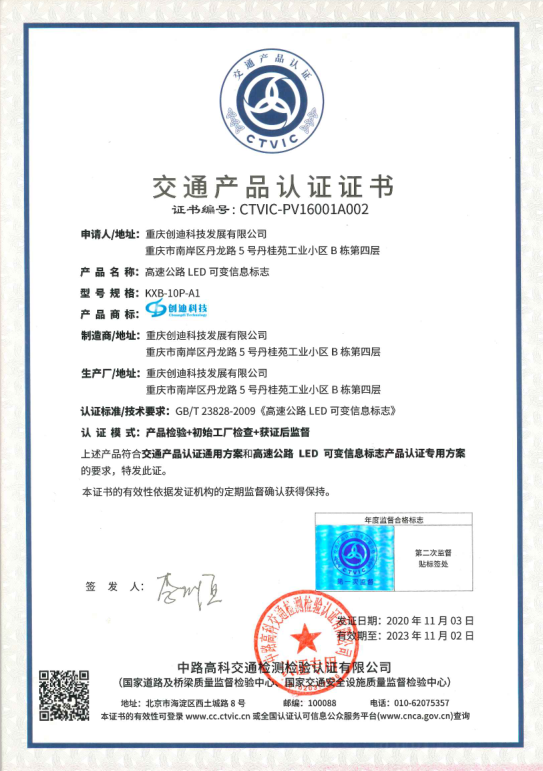 可變信息標(biāo)志交通產(chǎn)品認(rèn)證